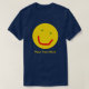 Un soleil jaune aux yeux verts souriant sur un arrière - plan bleu. Ajoutez votre propre texte.