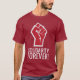 Soulevez votre main et donnez cinq à la solidarité. Texte de poing et de solidarité pour toujours en rouge sur un T-shirt. Chemise de personnaliser en changeant le style et la couleur.