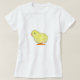 Une photo de clôture d'un petit poulet jaune jouet sur un arrière - plan transparent.