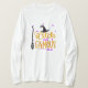 Cette chemise d'Halloween amusante présente une sorcière casquette et balai et il dit Sorcière et Famous en orange et violet.