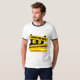 Un chat noir aux yeux jaunes regarde derrière un panneau jaune qui dit "Ne soyez pas timide, soyez fier de vous, faites-moi confiance que vous êtes bon." L'expression du chat est espiègle et ludique, comme si elle encourageait le porteur du T-shirt à être plus confiant.