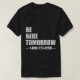 Tee graphique avec typographie blanche et audacieuse, avec "Be Here Tomorrow" sur un arrière - plan noir.