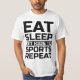 T-shirt confortable pour les papas actifs. "Mange, dors, fais du sport aux enfants, répète" capture l'agitation quotidienne avec l'humour.