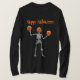 Un squelette portant une lanterne Jack O' et tenant des citrouilles courbés comme une sorcière et un chat effrayant sur les deux mains. T-shirt d'Halloween unique et drôle dans le style grunge comme un costume d'Halloween bon marché.