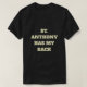 Le texte "St. Anthony a mon dos" est sur le devant. Le dos a une image traditionnelle de saint Antoine de Padoue avec l'Enfant Jésus.