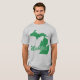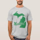 Montrez votre fierté nationale avec ces t-shirts et autres objets qui ont un contour de l'état du Michigan avec le nom à l'intérieur de la forme.