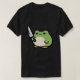 Bold kawaii frog with a serious gaze, light belly, and a cartoon knife—vibrant green hues, thick outlines, edgy yet playful vibe for quirky streetwear and novelty tees.
