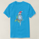 Dessin aquarelle d'un mignon perruque tacheté bleu et blanc en style noël. L'oiseau est assis sur un bâton décoré de saint et vous regarde avec un visage mignon. Il porte un casquette de noël, Vous voyez le perroquet du devant.