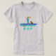 T-shirt avec dessin de fille en planche à pagaie SUP. Mon illustration originale contient de l'eau tropicale avec une tortue marine nageant aux côtés d'une fille et de son chien sur une planche à pagaie violette. La lettre «SUP» sous le dessin est un modèle en lettres grunge bleu aqua vif.