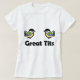 Great Tits sont de petits oiseaux perchants qui vivent dans toute l'Asie et l'Europe. Ces t-shirts drôles présentent deux bijoux Birdorable Great Tits de l'autre côté de la poitrine. Suggestive bête amusant pour les oiseaux et les fans de métis!