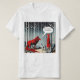 A bold red wolf and Little Red Riding Hood stand opposing each other where fear is expected, in a minimalistic, eerie forest.