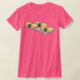Trois bouchées de sushi illustrées ornées de fleurs roses ornent les sommets.