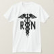 Montrez à vous un héros avec cette chemise design d'infirmière audacieuse. L'avant a un grand symbole de caducée noire et RN au centre de blanc. Cela fait un grand choix de mode décontracté pour une infirmière autorisée. Disponible en différentes couleurs et styles.
