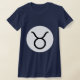 Symbole Taurus en noir. NB Ce dessin peut être customisé le motif apparaît comme un simple symbole noir sur des chemises légères, ou comme un symbole noir dans un cercle blanc sur des chemises noires.
