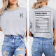 Montrez votre signe d'étoile de la façon la plus élégante avec notre T-shirt Zodiac Nutrition Facts ! L’avant est orné d’un symbole zodiaque et minimaliste, tandis que l’arrière est doté d’un tableau unique de la valeur nutritive qui décompose les traits de personnalité de votre signe, que ce soit la confiance à 100% pour Leo, le mystère à 80% pour Scorpio ou l’intuition à 95% pour les Poissons ! Fabriqué en coton haut de gamme, ce tee est ultra doux, respirant et parfait pour les amateurs d'astrologie qui veulent express leur énergie cosmique de manière ludique et moderne. Conçu pour le confort et la personnalité, cette chemise est le cadeau parfait pour les amateurs d'horoscope ou toute personne qui aime embrasser leur identité zodiaque. Disponible en plusieurs tailles et couleurs, c’est un must pour ceux qui croient que les étoiles ont leur mot à dire dans leur style !