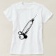 Illustration rétro d'une seringue. Ce design semble vraiment efficace sur ce T-shirt féminin