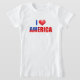 Un t-shirt à manches courtes pour filles est montré en blanc avec un drapeau patriotique imprimé I Love America, ce t-shirt est fait de matériaux de qualité et d'artisanat. Customisez cet objet ou achetez tel quel. Image stock