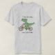 T-shirt avec un T-Rex amusant. T-Rey sur un vélo. Texte: "T-Rex tiny arms loves dutch bikes"