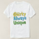 Montrez votre personnalité unique avec ce tee-shirt dynamique et amusant ! Avec le texte audacieux et ludique "Quirky Always Unique", ce design célèbre l'individualité et la créativité. Les lettres colorées et stylisées apparaissent contre n'importe quel arrière - plan, ce qui en fait un texte parfait pour ceux qui aiment se démarquer. C’est plus qu’une simple chemise, c’est une déclaration de qui vous êtes.