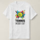 Cette pièce mélange des couleurs audacieuses et des formes dynamiques pour capturer l'esprit du tennis d'une manière fraîche et artistique. C'est plus qu'un simple design - cela représente la passion, le mouvement et l'état d'esprit qui anime chaque joueur de l'intérieur.