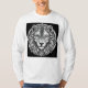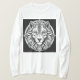 Illustration très détaillée et stylisée du visage d'un lion. Le lion est représenté en noir et blanc, mettant en valeur un travail de lignes complexe qui accentue sa crinière et ses traits faciaux. Les yeux du lion sont perçants et pleins d'expression, attirant l'attention. Autour de la tête du lion se trouve un motif circulaire décoratif qui complète la figure, ajoutant un élément de symétrie et de profondeur. Le fond noir contrasté met en valeur l'artisanat détaillé et donne à l'ensemble de la composition une apparence saisissante et majestueuse.