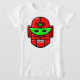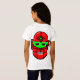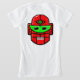Une tête de robot en rouge avec un élégant panneau en forme de croissant vert, un troisième oeil vert, avec des dents blanches et des reflets. Il a une sorte de grain bizarre comme s'il a découvert les merveilles d'une nouvelle huile à moteur révolutionnaire. D'un dessin vectoriel original de N.A. Berry. Le motif est répété à la fois sur le dos et sur le devant.