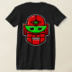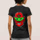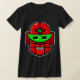 Une tête de robot en rouge avec un élégant panneau en forme de croissant vert, un troisième oeil vert, avec des dents blanches et des reflets. Il a une sorte de grain bizarre comme s'il a découvert les merveilles d'une nouvelle huile à moteur révolutionnaire. D'un dessin vectoriel original de N.A. Berry. Le motif est répété à la fois sur le dos et sur le devant.