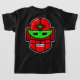 Une tête de robot en rouge avec un élégant panneau en forme de croissant vert, un troisième oeil vert, avec des dents blanches et des reflets. Il a une sorte de grain bizarre comme s'il a découvert les merveilles d'une nouvelle huile à moteur révolutionnaire. D'un dessin vectoriel original de N.A. Berry. Le motif est répété à la fois sur le dos et sur le devant.