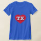 Ce t-shirt est doté d'un coeur rouge vif contenant les lettres coques TX, blanches et audacieuses, l'abréviation officielle de l'état du Texas, l'état étoilé solitaire.