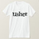 Design de texte noir cool T-shirts Usher, mugs, mousepads, boutons, sacs fourre-tout et autres équipements Usher qui peuvent être customisés avec du texte ou un nom. Nous avons des T-shirts en texte noir et d'autres articles assortis pour tous les membres de la fête de mariage et les membres de la famille!