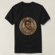 Vintage retro badge design with the words 'Est. [Year of First Kid]' around a sleepy cartoon dad face with coffee cup, dark circles under eyes, distressed texture, muted brown and tan color palette, 70s style illustration, bold outlines, t-shirt graphic, white background, no modern effects
