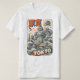 Retro-inspired T-shirt design featuring a powerful vintage robot towering over Tokyo, with bold Japanese characters and explosive energy. A striking mix of Japanese pop culture, sci-fi, and classic poster style.