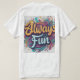 Fun géométriqueUn t-shirt audacieux et élégant avec l'expression "toujours amusant" dans des couleurs contrastées contre un arrière - plan motif géométrique.