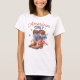 Ce design branché American Girly Cowgirl présente des bottes de cowgirl avec un arc patriotique. Certains mots sont dans une police de type corde.