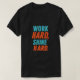 Le design des t-shirts comporte l'expression inspirante "Travailler dur, Briller dur" dans une police vibrante et multicolore. Le texte est audacieux et attrayant, se démarquant contre un arrière - plan jaune vif. Le design transmet un message de motivation, de persévérance et de récompense, inspirant les porteurs à mettre l'effort et récolter les bénéfices.