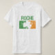 Un T-shirt comportant un shamrock blanc, vert, et orange irlandais affligé avec le nom de famille Roche.