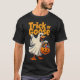 Funny Halloween goose in a spooky ghost costume with a pumpkin bucket full of candy. Perfect for humor-loving fans of Halloween and mischievous birds.