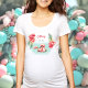 Summer girl baby shower maman d'être t-shirt avec un adorable bébé flamingo et fleurs tropicales roses et feuilles dans les couleurs pastel. Personnalisez facilement le texte. - Kate Eden Art