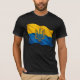 Ukrainian flag waving in the wind with Trident Coat of Arms.