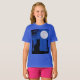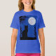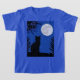 Tee de l'enfant dans la silhouette d'un chat, regardant une pleine lune dans un ciel étoilé bleu profond