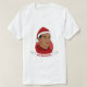T-shirt Homme avec illustration d'un Africain Américain ou Hispanique avec cheveux noirs courts et casquette du Père Noël rouge ; en cercle rouge sur un arrière - plan blanc, avec modèle texte personnalisable pour votre nom ou message