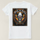 Un crâne, rendu dans un style graphique audacieux, est le chef-d'oeuvre de l'image. Ses sockets oculaires vides sont remplacées par des flammes brûlantes symbolisant la passion et l'intensité. La mâchoire du crâne est ouverte, révélant une rangée de dents pointues, ce qui signifie un esprit puissant et rebelle. La couleur générale de la palette est principalement noire et blanche, avec des accents de rouge et de jaune, soulignant l'intensité de l'image.