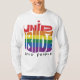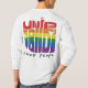 Le t-shirt présente le message "United Pride Proud People" dans un design multicolore vibrant. Chaque mot est d'une couleur vive différente, créant un look audacieux et festif. (Imaginez les couleurs de l'arc-en-ciel étalées sur le texte).