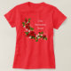 T-shirt de base rouge pour femmes avec l’image d’un bel élément décoratif rose rouge avec fleurs blanches, coeurs blancs et diamants. Texte facultatif. Voir toute la collection de vêtements de fête des mères dans les TOUCHES SPÉCIALES | Section Favoris.