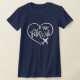 L'écriture blanche dit "Une Épouse Pilote" à l'intérieur d'un coeur blanc bouclé avec la silhouette d'un avion suivant le flux du coeur sur un t-shirt de la Marine. C'est un cadeau merveilleux pour vous-même (si vous êtes une fière épouse pilote AA) ou pour un ami. Il s'agit d'une impression en une seule couleur ; toute l'encre blanche. Choisissez parmi une variété de couleurs et de styles de t-shirts!