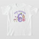 Sixième anniversaire princesse mignonne en rose, avec Unicorne, grenouille et papillon, avec le texte "Cette princesse est 6" en violet.