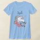 T-shirt Unicorne blanche Fleurs roses Mariage bleu