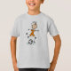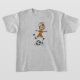 Un chiffre de bâton de fille dans un uniforme orange du football donne un coup de pied le ballon de football sur le T-shirts personnalisable du football de filles, les cartes, les tasses, les sacs fourre-tout, et d'autres articles d'habillement et de cadeau du football.