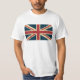 Un T-shirt affligé sale patriotique de conception de DRAPEAU britannique rouge, blanc et bleu d'Union Jack. Drapeau de la Grande-Bretagne Royaume-Uni.