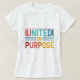 Ce t-shirt présente le message d'unité et les objectifs partagés avec le texte "United in Purpose" affiché dans un schéma multicolore dynamique. Chaque mot utilise une couleur audacieuse différente, créant un design dynamique et attrayant qui célèbre la collaboration et une cause commune.